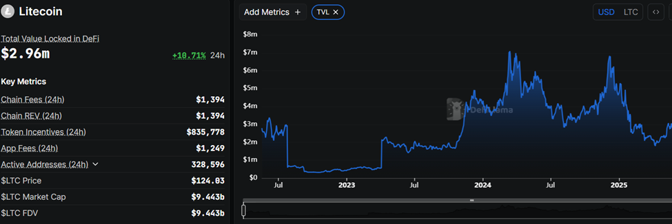 Litecoin’s expansion into the world of decentralized finance (DeFi) continues to grow, with a Total Value Locked (TVL) of $2.96 million. Meanwhile, over 164,000 $LTC tokens are now held in MWEB addresses, which offer users enhanced privacy.